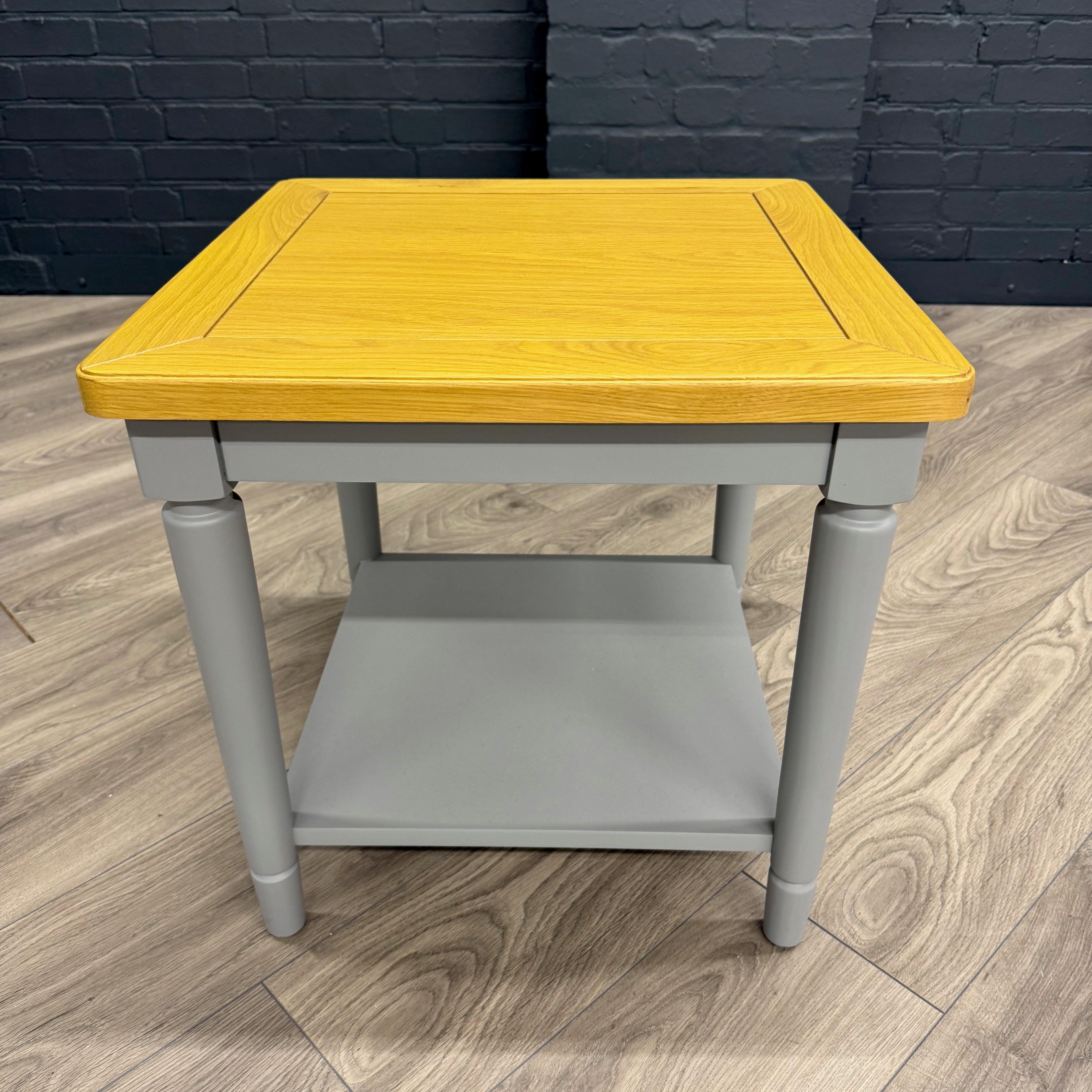 Calm and contemporary the Harmony range is designed in a pewter finish with an oak top. With its captivating ornate legs, ensuring this range is suited to any home. Featuring a square fixed top which is a great feature to dress up with a lamp and any decorative accessories you have.